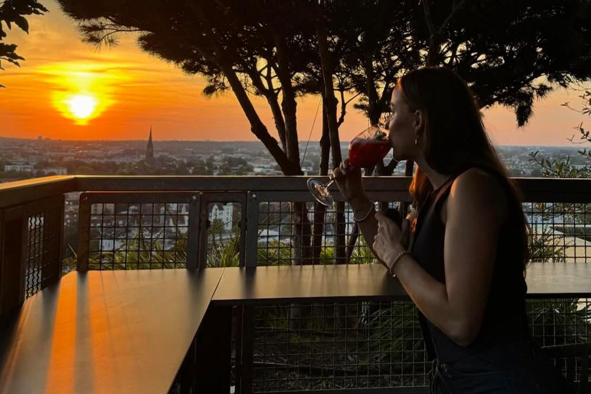 Wer eine Tischreservierung hat, kann gern mit dem Fahrstuhl links vom Bunker bis zur Ebene 0 fahren. Dann geht ihr in Richtung Hotelrezeption, von wo aus die Fahrstühle ins Sala im 5. Stock fahren.